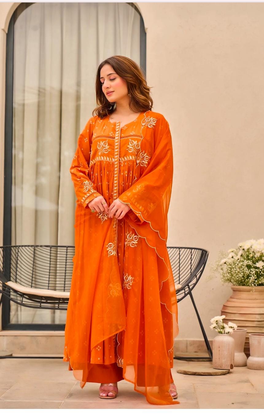 Elevate your ethnic wardrobe with this exquisite cotton dupatta set, crafted from pure, breathable fabric that ensures comfort throughout the day. The vibrant orange hue radiates warmth and sophistication, while intricate embroidery detailing adds a touch of refined elegance. Perfect for festive occasions, celebrations, or everyday wear, this versatile piece complements traditional and contemporary ensembles alike. The premium cotton construction guarantees durability and easy maintenance, making it an investment piece that transcends seasons. Ideal for those who appreciate authentic craftsmanship and timeless style.
